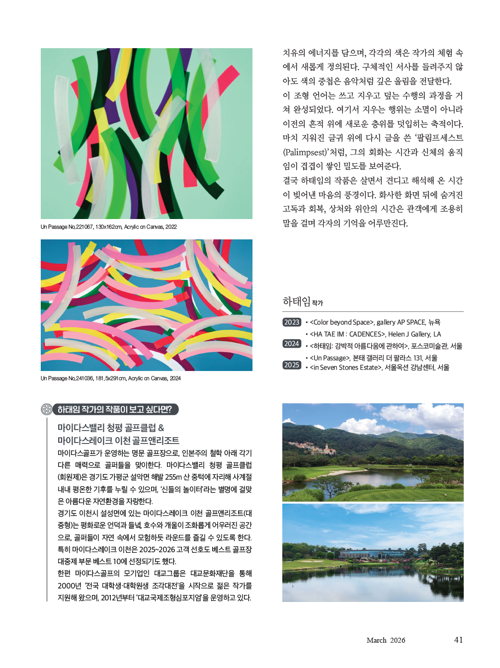 클럽하우스 매거진 4월호 '아트앤컬쳐' 마이다스밸리 청평 & 마이다스레이크 이천 소개