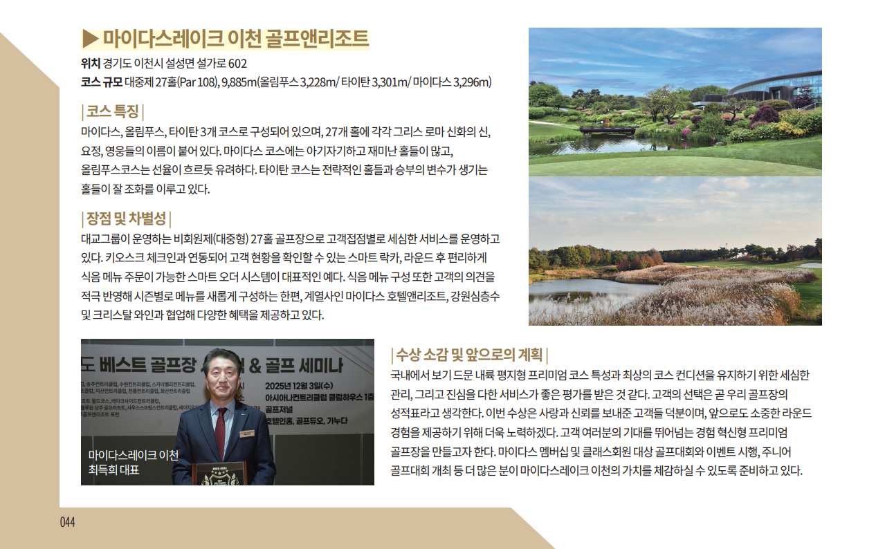 골프저널 매거진 1월호_마이다스레이크 이천 수상 소식